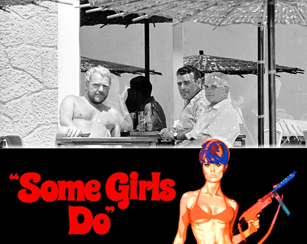 Kit West (left) on the terrace of the famous Cap Sa Sal Hotel (Begur, Costa Brava, Spain), discussing the filming of 'Some Girls Do'. |